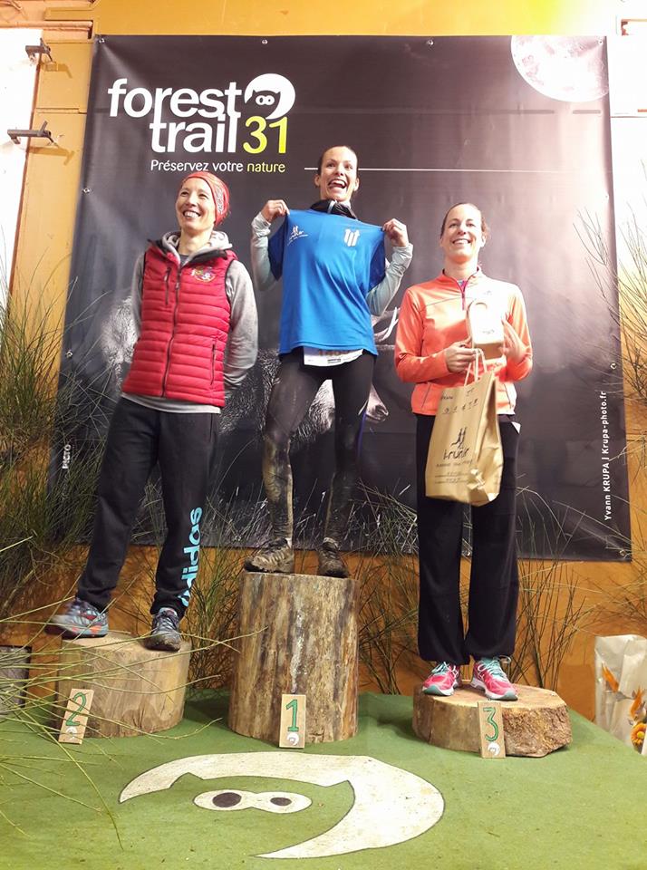 - Tout d’abord Gaëlle Le Roch, dont le surnom pourrait rapidement devenir “Miss 100 %”, puisqu’à chaque sortie ou presque elle finit sur la boîte, au scratch ou dans sa catégorie, et qui, après deux ans sur la deuxième marche, continue sa longue histoire avec le Forest Trail en se retrouvant troisième de sa course fétiche, la Météore