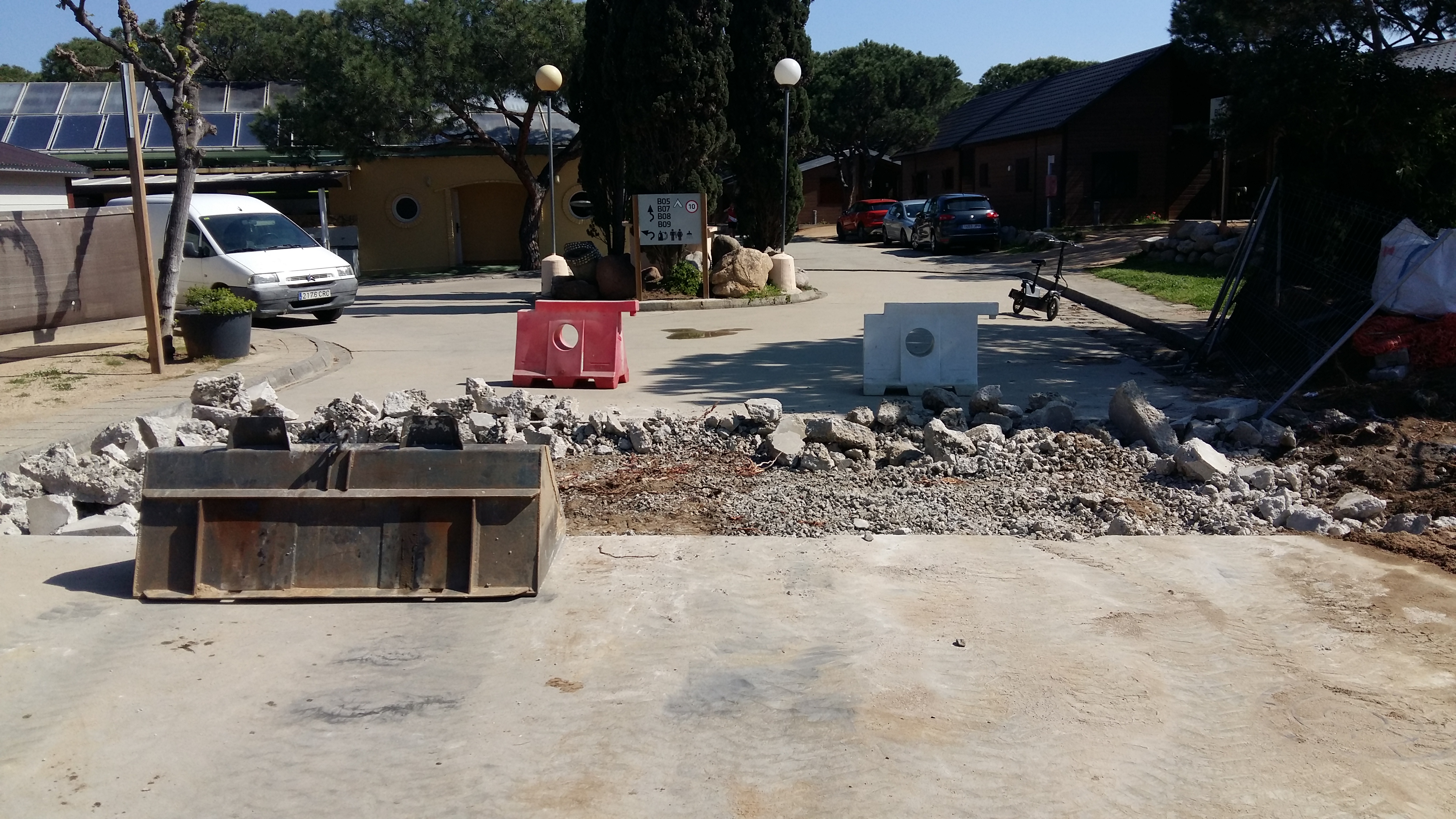 A l’arrivée en revanche, c’est un peu la douche froidre : d’abord, la piscine du camping n’est pas en eau, mais en travaux, et elle est en train d’être coupée en deux bassins. Adieu les longueurs de natation, il faudra nager en mer ou trouver une autre solution.