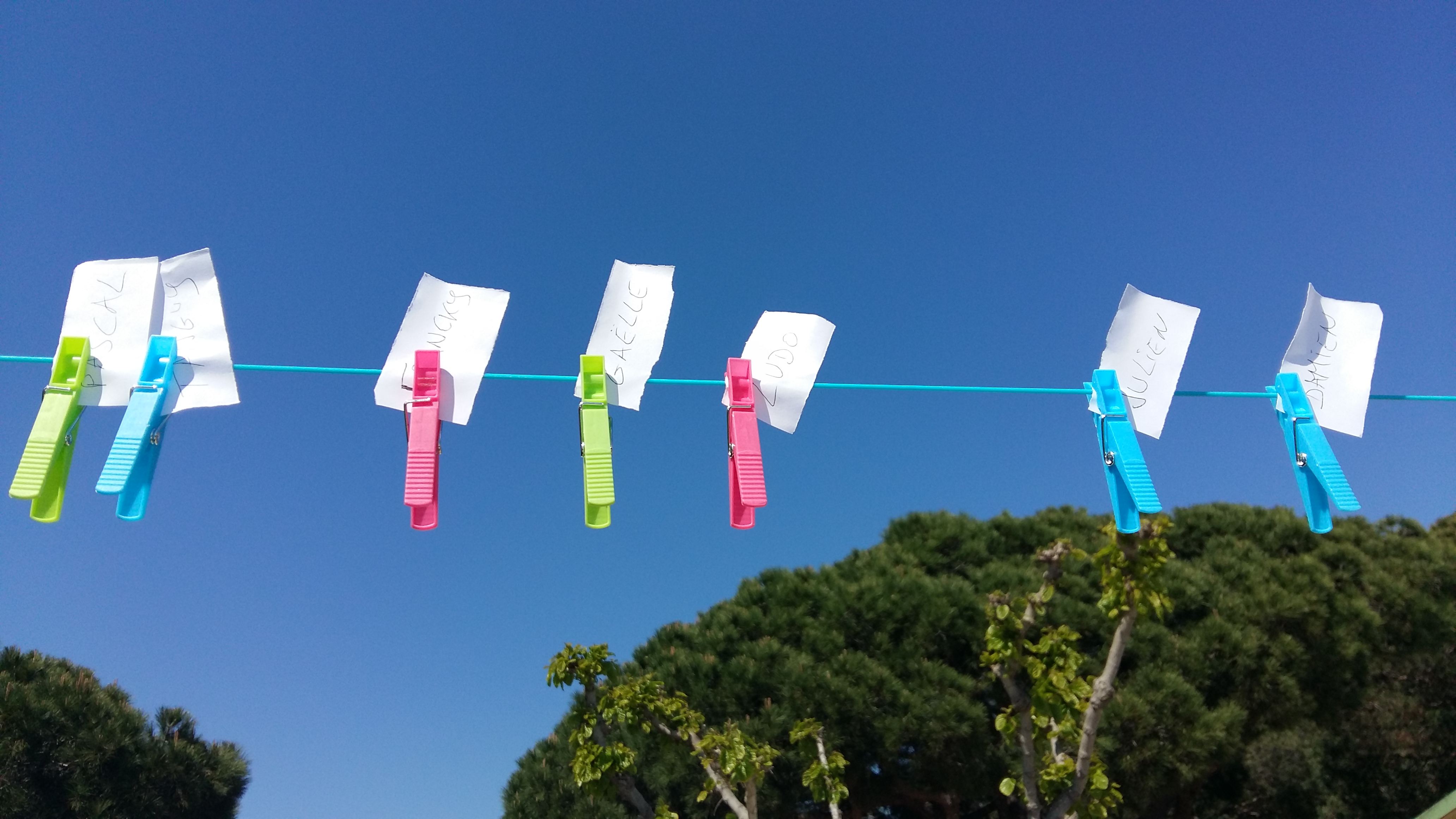 Et c’est parti pour un aller-retour jusqu’au camping où il faut récupérer un petit papier installé sur le fil à linge, avant de repartir le long de la plage… et de finir par l’escalier du parking pour bien achever les jambes !