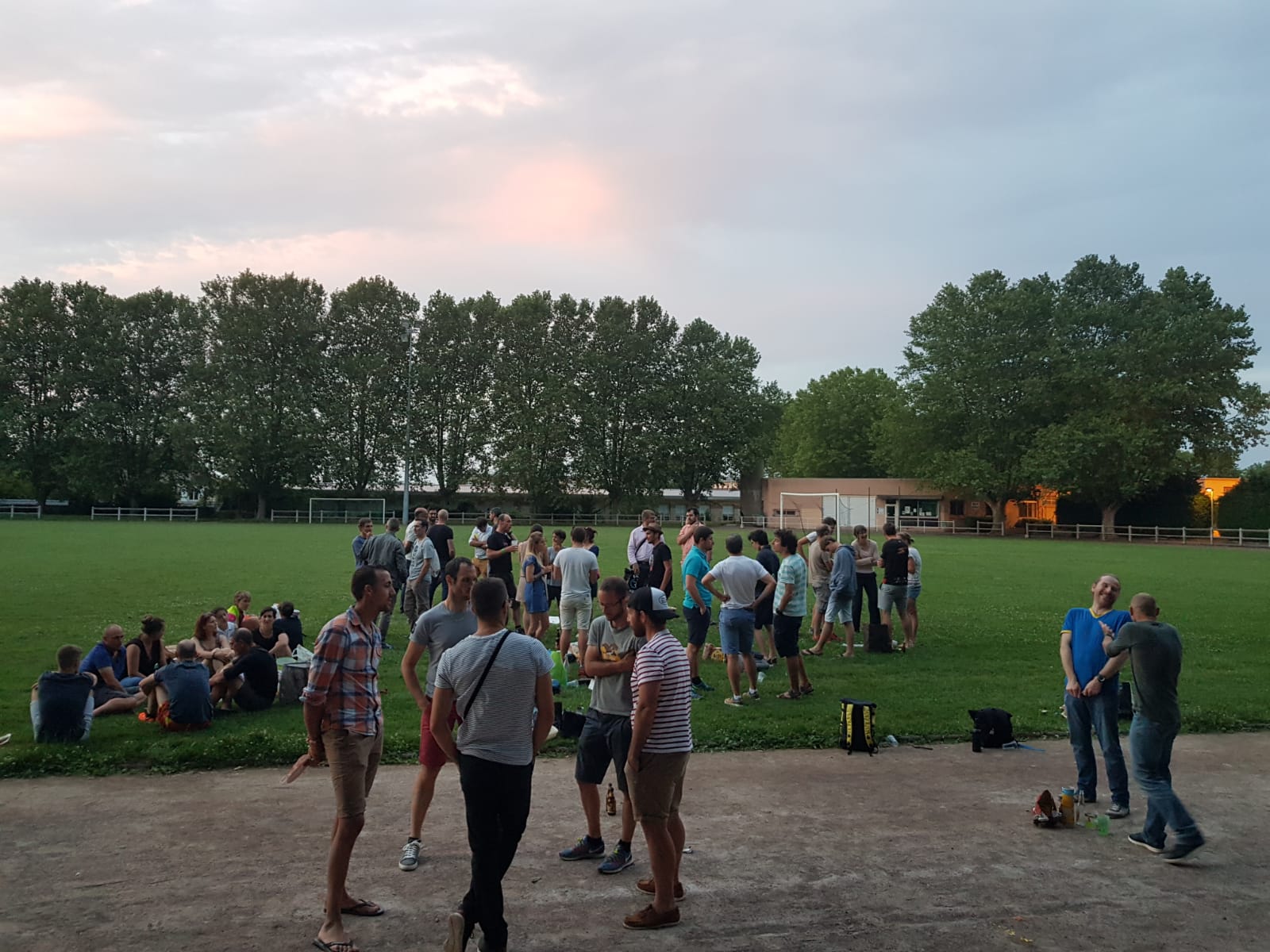 Il y avait foule, sur le stade de l’ASEAT. Rien de très inhabituel lors que la météo est clémente ? Certes… Sauf que nous étions lundi, et pas mardi, et que tout le monde était en tenue de ville, et pas en cuissard et T-shirt technique. Et au programme, nulle PPG, pas de gainage, le fractionné consistant à choisir les bonnes chips pour intercaler entre les bières et avec quel breuvage accompagner les différents plats apportés.