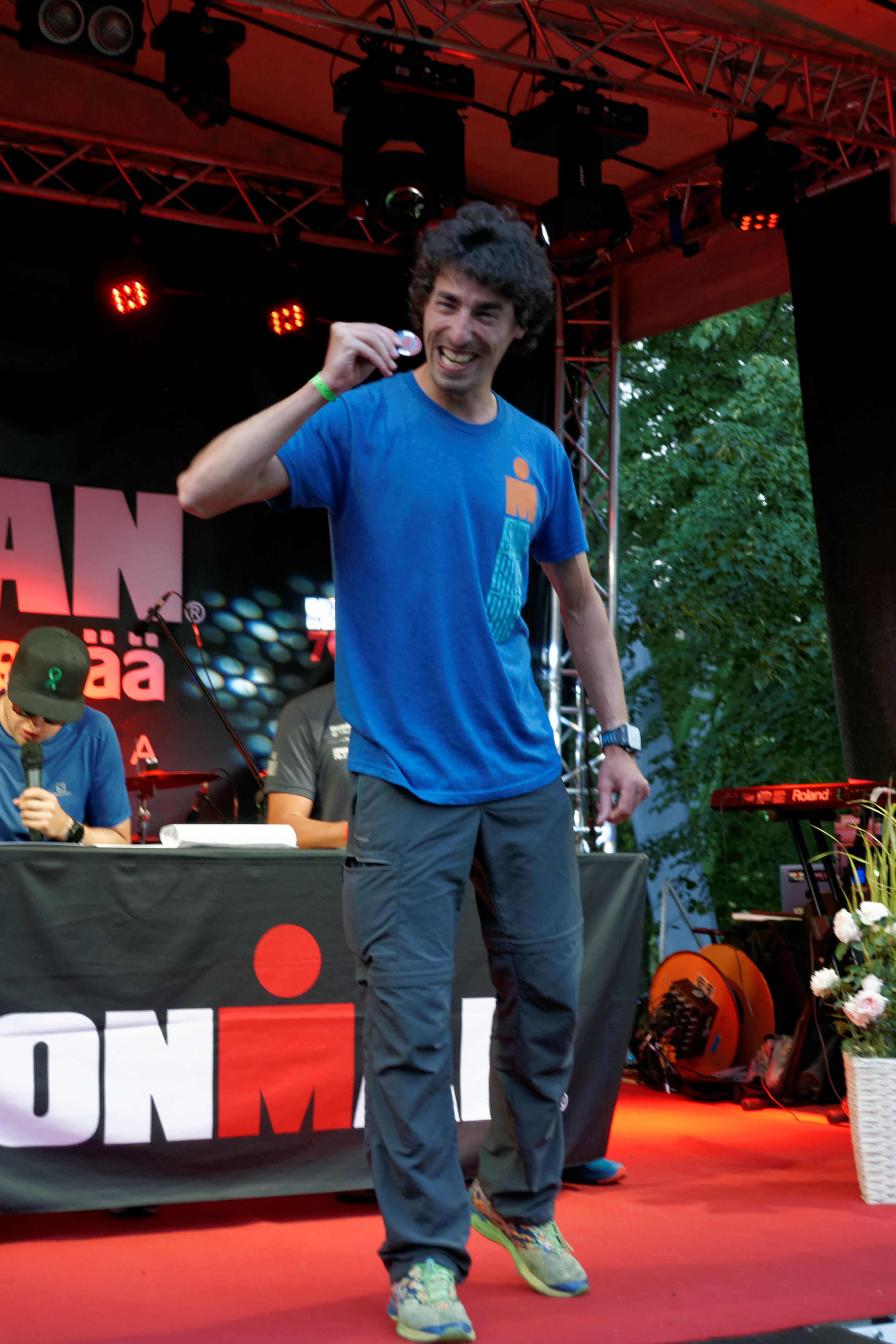 Votre serviteur aura finalement fait son meilleur half à ce jour : une natation tout en crawl pour la première fois (et en gagnant 10 minutes par rapport à ses temps habituels), un vélo plus rapide encore sur ce parcours accidenté que le half de Lacanau deux ans avant, et une course à pied à peu près correcte. Et en tout cas, à en juger par l’état à l’arrivée, il était clair qu’il avait tout donné…