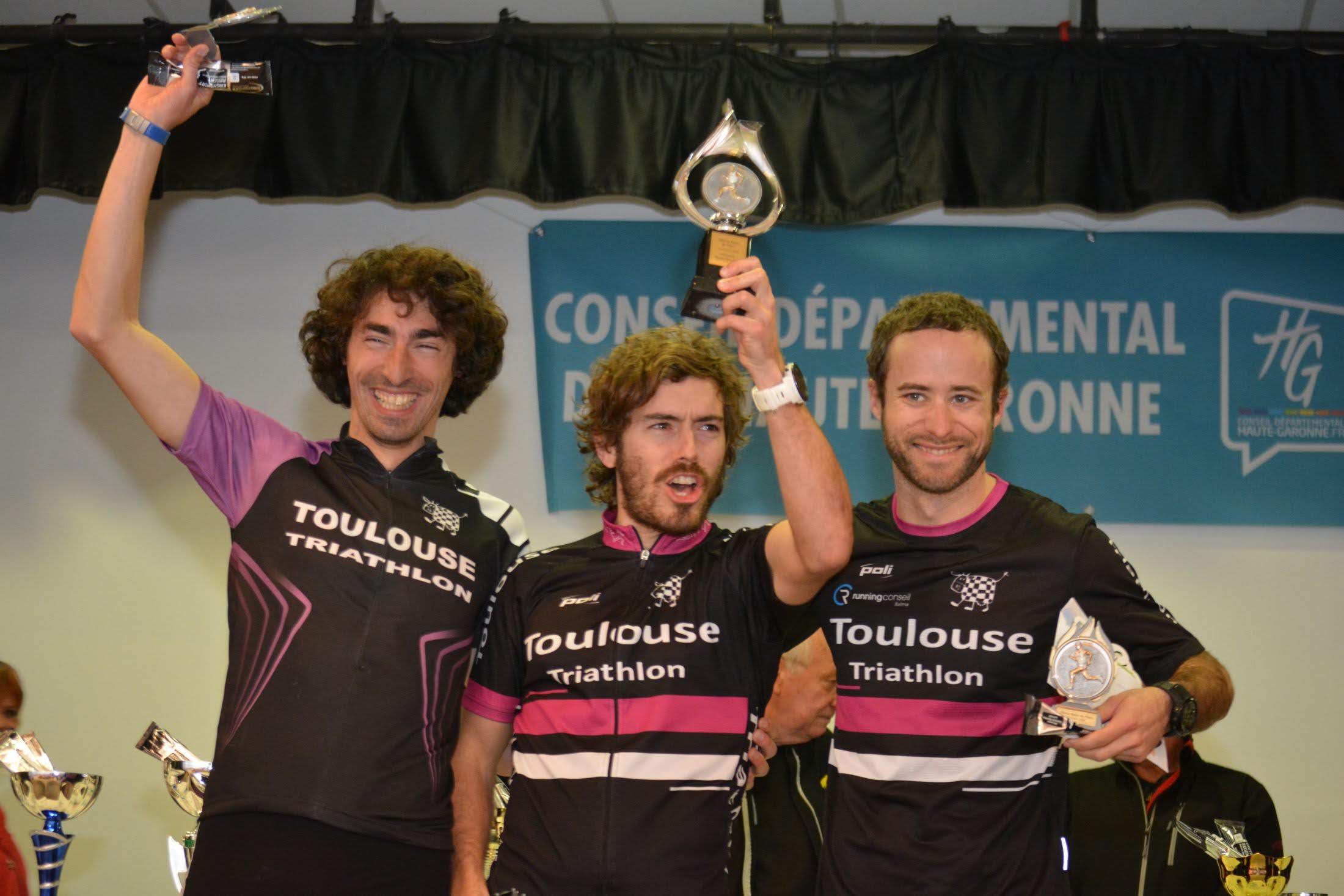 En l’absence du brocoli qui ne pouvait pas être au relais et au moulin, et avec la blessure de Damien, il restait tout de même Julien, Charles et Nicolas pour arborer les couleurs du Toulouse Tri et faire de belles places d’honneur face à l’armada du LST venue tout rafler.